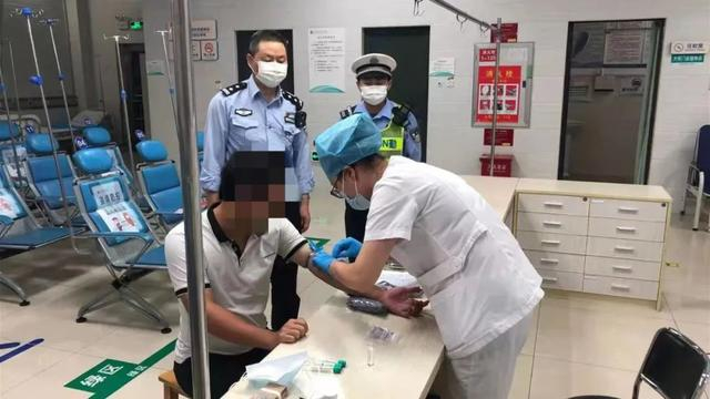 在随后的吹气测试中,司机陈某的数值直飚三位数,涉嫌酒驾。陈某难以置信地揉着眼睛,扶额后悔。随后陈某被带往医院进行血检,结果为107.4mg/100mL,醉驾。