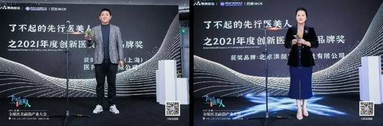 11月18日,由好美MCN&医美前沿共同主办的“2021·首届全球医美前沿产业大会”在上海万达瑞华酒店隆重召开。四环医药控股集团旗下北京渼颜空间科技有限公司、战略合作伙伴HUGEL-韩国秀杰(上海)医药科技有限公司荣获“了不起的先行医美人”之2021年度创新医美前沿品牌奖。公司新品事业部总经理孙超、市场总监张燕上台领奖,并在大会上参与圆桌论坛、主题演讲,与国内外知名品牌方、投资人、厂家、专家、机构代表进行深度分享与交流,共同探索在医美新趋势、新风口下的新机会。