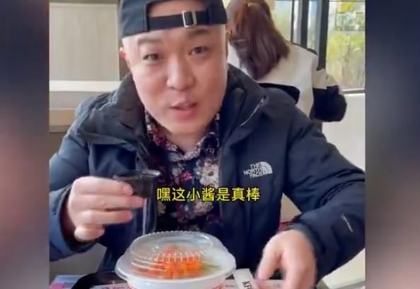 你以为到此就结束了,不,只见视频中的“牛道”大声问起肯德基服务员,“哎,您这有蒜吗”。在得到否定的回答后,他又拿起自带的炸酱,跟着镜头说,“这老北京炸酱,吃这口必须得吃蒜,没有蒜就没有酱的灵魂了”。