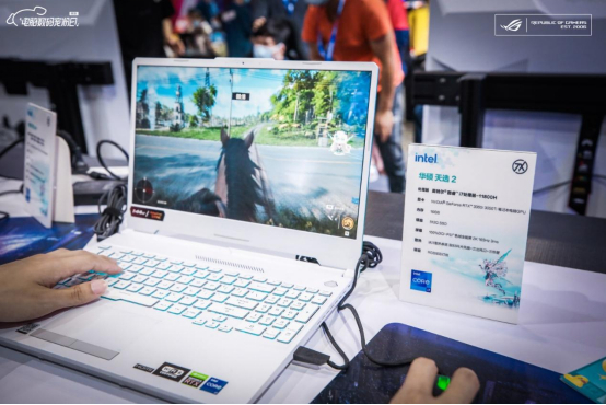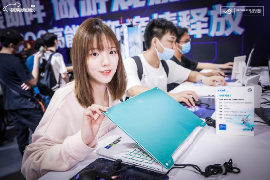 除了DIY硬件,在核聚变2021华硕展台,还为玩家门布置了充满二次元风格的天选姬笔记本体验区和ROG笔记本全家桶游戏区,让玩家们在这里能够体验到当下流行的移动平台笔记本带来的强劲游戏性能释放。