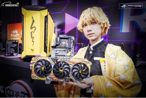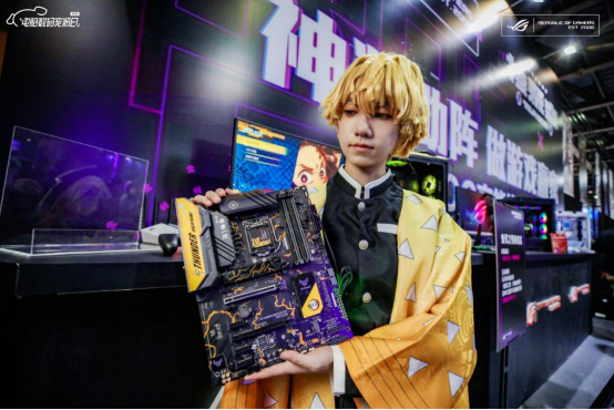 ROG展台为大家准备了充满情怀的五大主题神装区域,让玩家能在经典IP联名加持的顶级硬件包围中,深入沉浸到游戏作品、人物形象刻画的世界中,进入ROG元宇宙体验游戏改变世界的乐趣。令人惊喜的是,更有鬼灭之刃粉丝Coser自发前来与产品互动合影,信仰值满满。