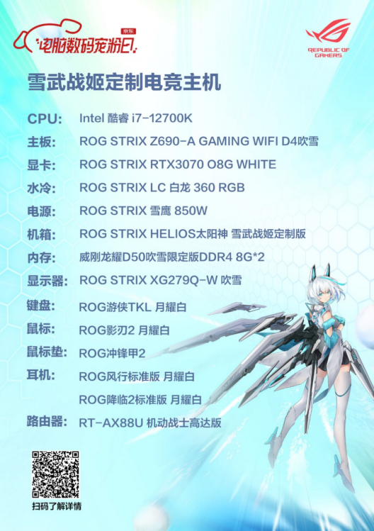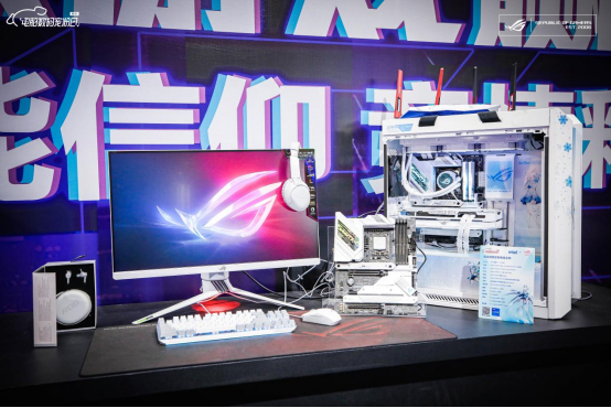 雪武战姬主题定制电竞主机是颜值爆表的ROG白色全家桶,已经实装Intel第12代酷睿平台。