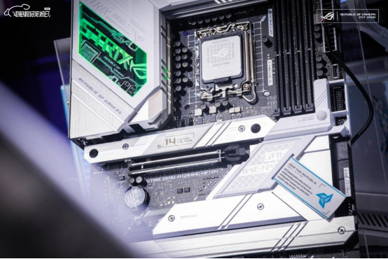 现场展出的还有旗舰级主板ROG MAXIMUS Z690 EXTREME,采用24+1供电模组(105A),具备新一代AniMe Matrix LED光显矩阵屏和2英寸LiveDash OLED系统显示屏,适合发烧玩家体验。
