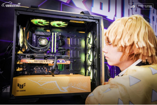 要说当下人气动漫,那恐怕是非《鬼灭之刃》莫属。为满足玩家们的电竞需求和二次元喜好,华硕×鬼灭之刃联名版主板、显卡、路由器、机电散及外设装备等组成的全家桶主机同样也成为了本次核聚变2021华硕展台的部分,外观设计方面充斥着大量的鬼灭之刃元素,颜值惊艳,同时还具备强悍的电竞性能,展现硬核实力。玩家们纷纷在《鬼灭之刃》定制主机上体验联名游戏《鬼灭之刃:火之神血风谭》,带来更加沉浸的二次元元宇宙体验。