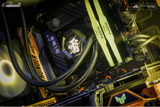 主机配备了ROG STRIX LC 飞龙II 360一体式CPU水冷散热器与ROG STRIX雷鹰1000W金牌全模组电源