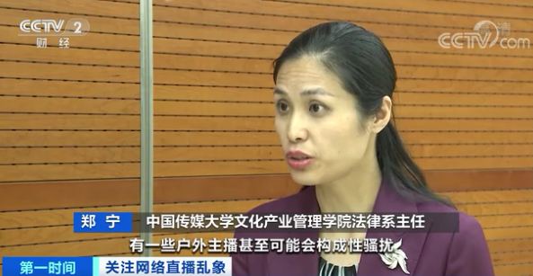 中国传媒大学文化产业管理学院法律系主任 郑宁:有一些户外主播甚至会构成性骚扰,比如说他对一些女性有身体上的触摸等不尊重行为,这个在《民法典》里也是明令禁止的。