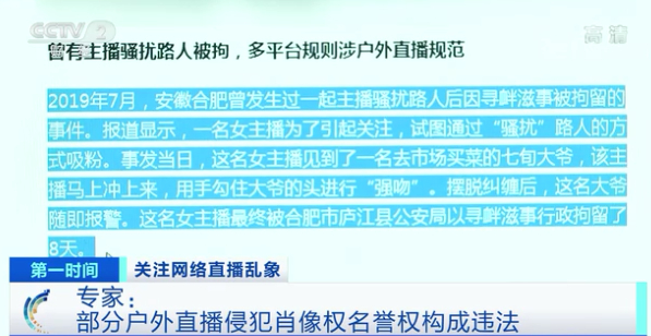 专家:部分户外直播侵犯肖像权名誉权构成违法
