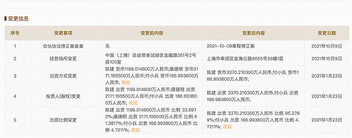 富友支付和富友网络均由上海富友金融服务集团股份有限公司(下称 “富友集团”)控股。2019年,康建明退出富友集团经理备案,并在2021年1月退出大股东的投资人名单;后于9月退出富友集团董事备案,新增张达。据工商信息,康建明原本其对上海富友号投资中心(有限合伙)投资比例达到61%,目前已全部退出。