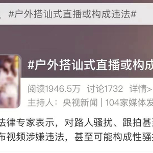 近日,央视新闻曝光户外搭讪式网络直播以及短视频乱象,引发广泛关注。