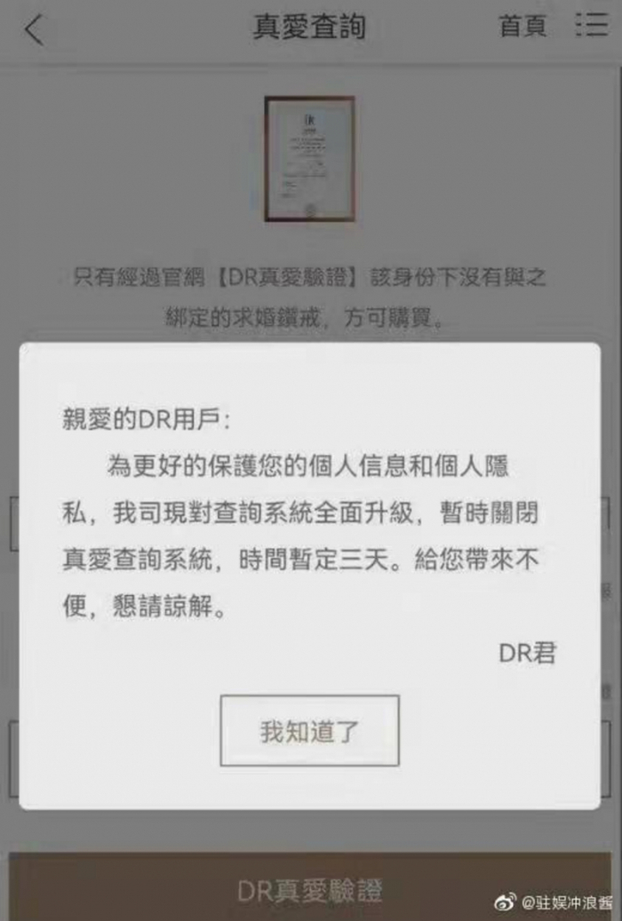 不管艺人们所说是否属实,都从侧面证明DR戒指所谓的实名购买并签署《真爱协议》的销售方式存在严重漏洞。为什么粉丝可以盗用身份证购买钻戒,DR方面不会进行核实吗?又是为什么购买信息,任何人随意就能查询得到,DR方面是如何保护顾客隐私的?
