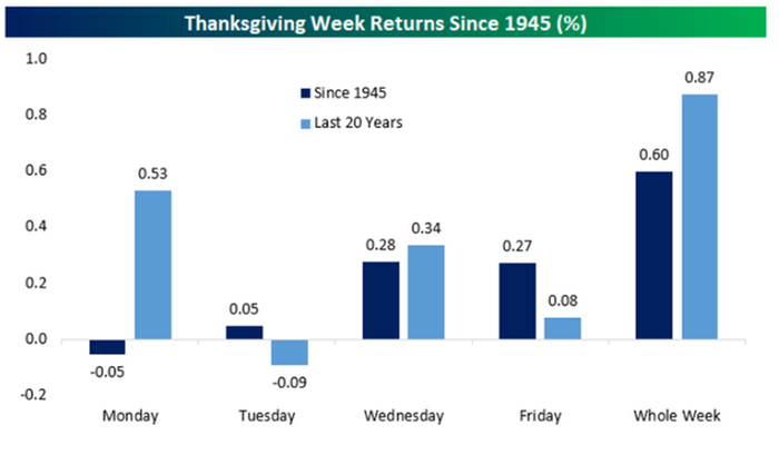 感恩节不仅是低交易量的代名词,同时也有“假期效应”的说法。