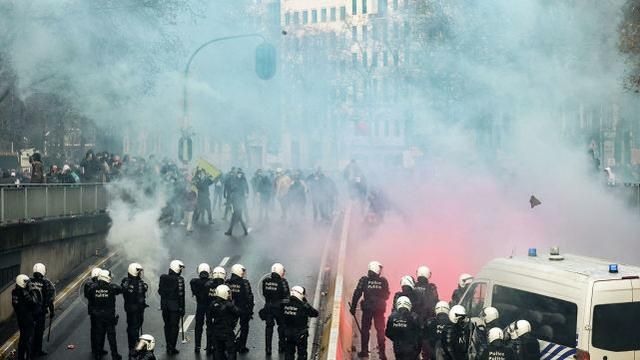 不满新冠封锁措施,布鲁塞尔爆发抗议活动,警察使用催泪瓦斯