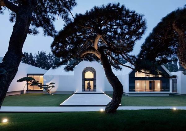 离阿那亚不远的北京市顺义区温榆河畔,199棵松树在一抹白墙的衬托下徐徐展开,两端古建与中间极简当代建筑相呼应,这里坐落着松美术馆。