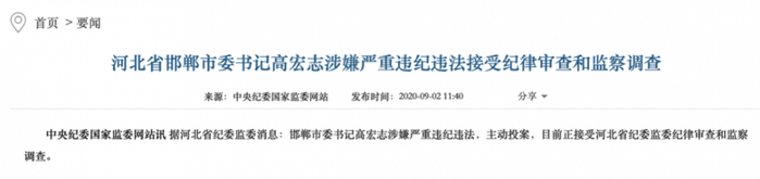 在高宏志投案前,邯郸市有多人被查,2020年8月4日,邯郸大名县委书记房延生被查。房延生长期在邯郸工作,担任过邯郸市委副秘书长、市旅游局局长、大名县县长、县委书记等,系高宏志下属。