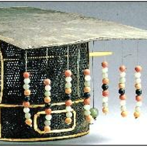 九旒冕,1970年山东省邹城市鲁荒王墓出土,明代洪武年间(1368—1398年)所制。冕高18厘米、宽23.5厘米,包含冠武、金簪、綖(yán)板、旒(liú)等部分,由竹、木、丝、金、铁、玉石及大漆等制作而成。2011年3月,在“山东博物馆十大镇馆之宝”评选活动中,经公众和专家的评议投票,九旒冕高票当选,成为“山东省博物馆十大镇馆之宝”。