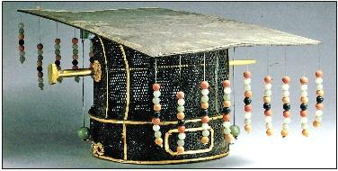 墓内共出土器物1116件,这其中不少为稀世珍品,如木制贴金的“鲁王之宝”金印,雕刻精细的彩绘木俑仪仗;另外还有唐代斫制的“天风海涛”琴,元代钱选的工笔白莲画等。这些珍贵文物完整呈现了明朝初年亲王的奢华生活,而最能代表皇家威仪的则属九旒冕。