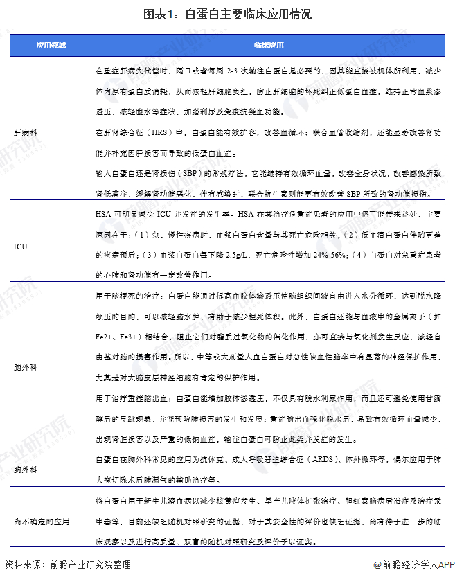 白蛋白广泛应用于肝病科、ICU治疗科、脑科等领域