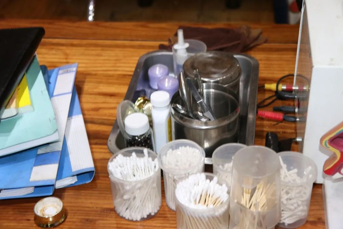 诊疗中,这名工作人员用棉签从一个白色塑料瓶中取出药膏,给患者上药,全程未佩戴口罩与手套。当记者询问其是否有医疗机构执业许可证和医师执业证书时,对方表示没有。
