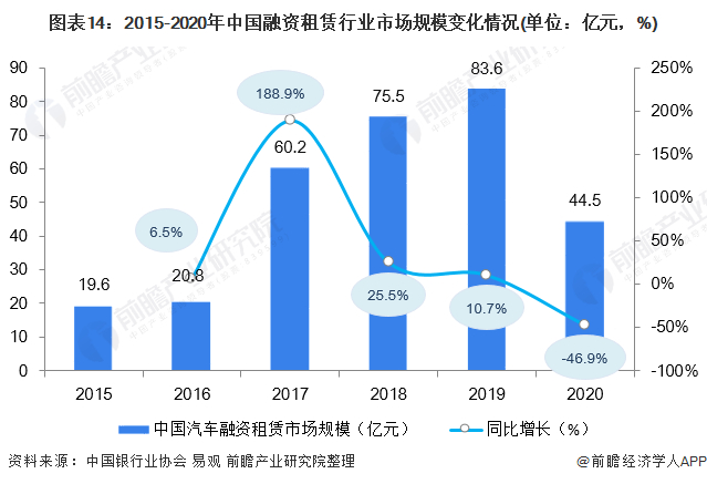 2020年,由于年初新冠肺炎疫情带来的汽车行业寒冬,汽车融资租赁行业市场规模大幅度降低。