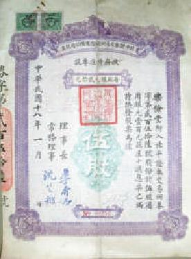 中国近代历史上第一家通过发行股票筹集资金兴办的股份制企业,是1872年成立的轮船招商局。此后,在1880年前后,先后有近40家企业通过在市场上发行股票筹资得以创办,掀起了洋务运动时期股份制企业兴办的一个小高潮。