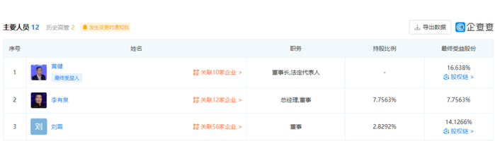 从融资来看,燕之屋在2016年12月获得了阳明资本(一家专注于生物技术、医药医疗及健康领域投资的专业投资管理公司)的战略投资之后,再也没有融资信息传出。不过,燕之屋第一大股东双丹马(黄健控股的企业,持股比例77%)的持股比例则从融资后的28.73%下降至今年6月9日的21.60%,实际控制人黄健对燕之屋的最终受益股份比例为16.64%。