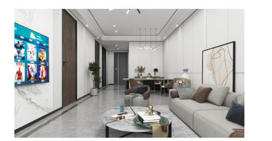 比如装配式内墙可根据不同造型和场景可灵活选材,具有环保、耐火、防潮、抗污抗刮等优点;装配式地面采用可集成干法地暖模块,导热效果优异,表面可铺装多种地砖;装配式防火吊顶系统采用 A 级防火板并预制装饰层,安全美观兼具;软膜天花吊顶系采用柔性聚氯乙烯软膜作为面层,造型易凸显个性化;装配式卫浴系统同样多面表现,可灵活选择SMC、铝蜂窝防水底盘,瓷砖、石材等饰面;装配式厨房独创SMC“冰箱式”收纳系统,柜体采用高新技术材料一体模压成型,打造“无木质、零甲醛整体厨房”。