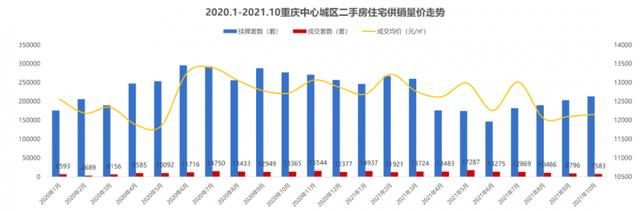 在贝壳找房上,2019年3月,重庆二手房挂牌数量接近6万套,7月突破10万套,10月突破12万套;到2020年4月,这一数据已达14万余套,11月份超过17万套;2021年7月14万套,8月15万套,10月达到16万套。