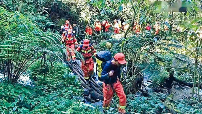 20日,搜救人员在山中的一条小溪旁发现了失联队员用红色油漆留下的记号,随后,搜救人员又沿小溪发现了失联队员的粪便与雨衣残片。