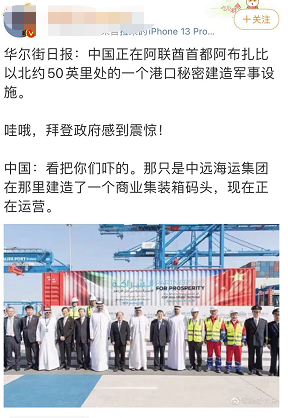 这一次,就在美国国防部长奥斯汀访问中东前几个小时,《华尔街日报》发文称,中国在阿联酋一港口秘密建造疑似军事设施,美高官集中努力几个月终使阿暂停该项目。