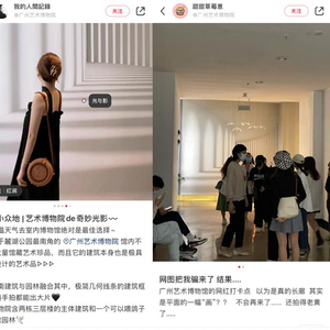 值得注意的是,这些博主晒出照片时,还会配上详细的文字描述。比如把广州艺术博物馆背景墙纸拍摄成艺术回廊的博主,声情并茂地写道,这是“一个小众但处处隐藏着惊喜的拍照圣地”、“充满线条感的框架结构随手一拍就能出大片”……这样的文字,显然已是一种“引导”。这些网红博主掌握了对“优雅”的定义,文字描述形成一种暗示:这么“优雅”的生活我体验过了,你也赶紧来体验吧!