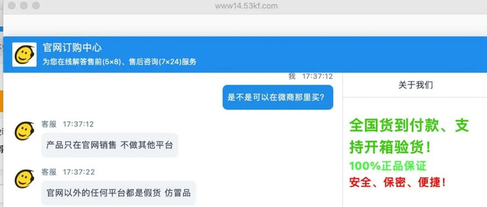 记者进一步询问网站是否可以在其他渠道购买正版魔胴防弹咖啡,对方表示,“产品只在官网销售,不做其他平台”“官网以外任何平台都是假货,仿冒品。”