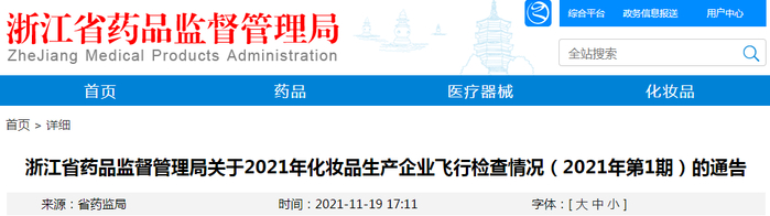 浙江省药品监督管理局关于2021年化妆品生产企业飞行检查情况(2021年第1期)的通告