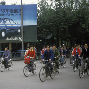 法国摄影师Jean-Marc CHARLES拍摄的20世纪80年代的四川成都,背景为桑塔纳的广告
