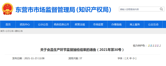 中国质量新闻网讯 11月23日,山东省东营市市场监督管理局网站发布关于食品生产环节监督抽检结果的通告(2021年第30号)。