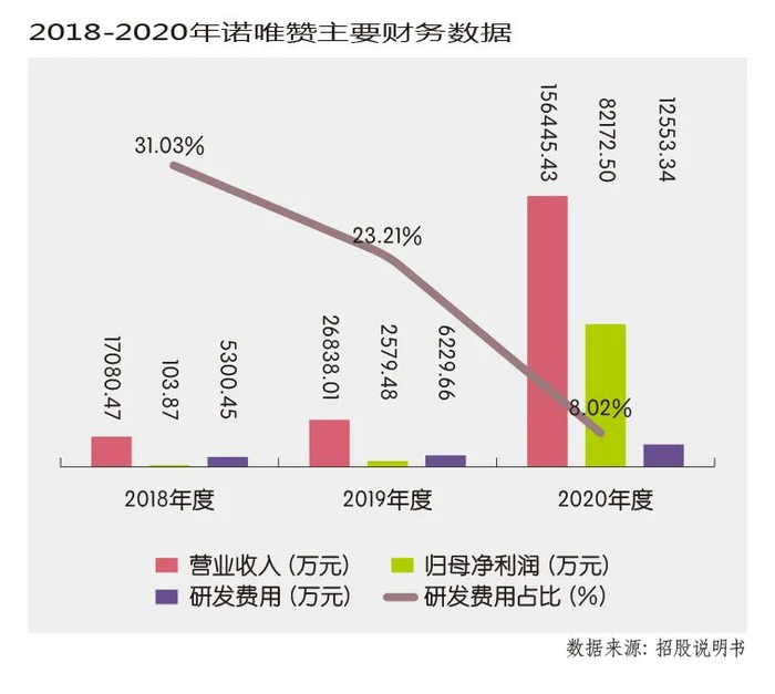 在招股说明书的重大事项提示中,诺唯赞尤其表示,当前新冠疫情的不确定性、全球疫苗接种的逐步普及、国内相关产品的获批、相关行业政策的变化等因素均可能会对未来的经营业绩产生不利影响。