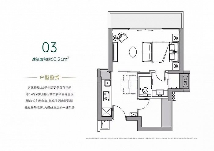 从之前流出的户型来看,建面约60平方米的户型被设计成一室一厅一卫,客厅和主卧连在一起,配有超大的阳台,而在进门的玄关处,还留有一个空置的区域,大小可做成房间。