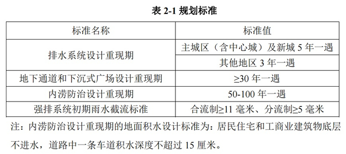当然有,《上海市城镇雨水排水规划(2020-2035 年)》要求排水系统设计重现期为主城区(含中心城)及新城5年一遇(58毫米/小时),其他地区3年一遇(51毫米/小时)。