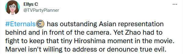 韩国网友火力全开:“二战里这么多惨剧,永恒族只心疼广岛,被日本法西斯戕害的任何一方都没能入它的眼。”“这部电影竟然将日本置于(二战)受害者的角度?”