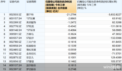 美邦等10股前三季度亏损