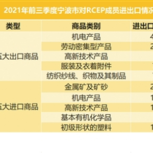 一方面,RCEP成员的金属矿、基本有机化学品、初级形状塑料等原材料,以及部分“高精尖”的高新技术产品,是宁波制造不可或缺的资源;另一方面,宁波生产的机电和劳动密集型产品,也在源源不断填补RCEP成员的货架,并向当地的生产基地输送纺织纱线等原材料。