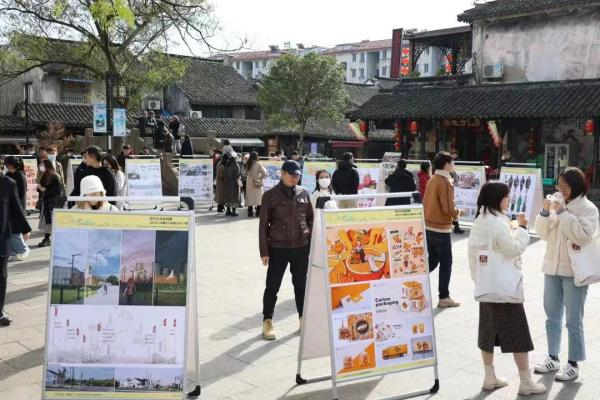 据介绍,从2019年到2021年,“我为乡村种风景”长三角青年乡村振兴设计大赛已连续举办三届,吸引了越来越多的参赛团队,参赛作品也越来越接地气。今年,共有来自全国的500多个团队报名参赛,组委会从300件投稿中筛选出有效投稿250余件,再经过线上盲评和14所院校近20位专家的线下投票,从168件入围作品中挑选出了34件优秀作品参加本次巡展。在去年基础上,组委会还增设了其他的设计种类,如服装设计和专项视频制作,丰富了品类和纵深,让艺术设计和乡村建设的结合更为多样化。