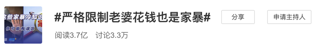 11月25日,#严格限制老婆花钱也是家暴#登上热搜,截止发稿有3.7亿阅读。调查显示,逾四成受访者不知经济控制是家暴。