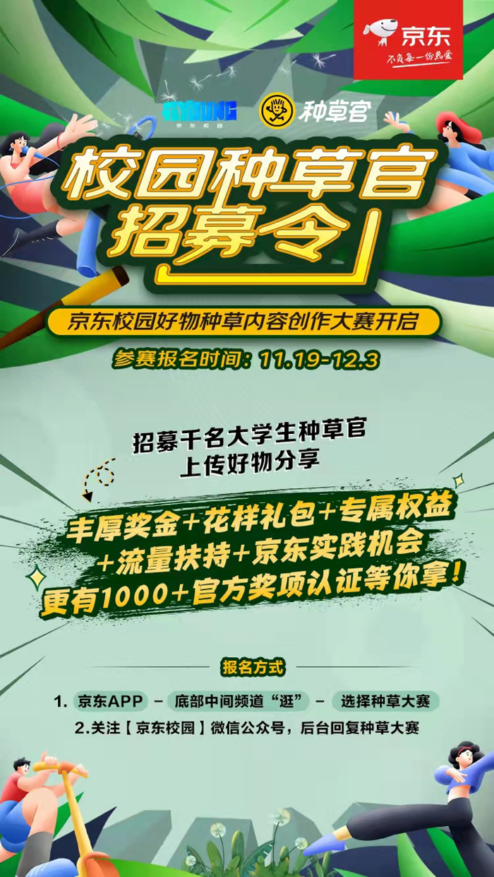 种草|2021京东校园达人选拔系列活动之大学生好物种草内容创作大赛即将开始招募!