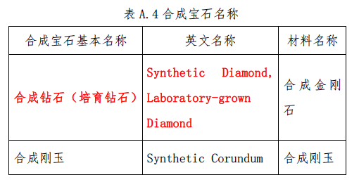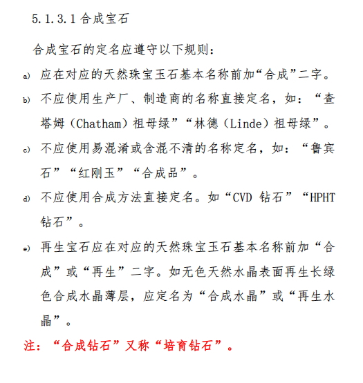 修订意见1: 在“5.1.3.1 合成宝石”条款末尾加注“合成钻石”又称“培育钻石”,即红色字体部分。图/文件截图