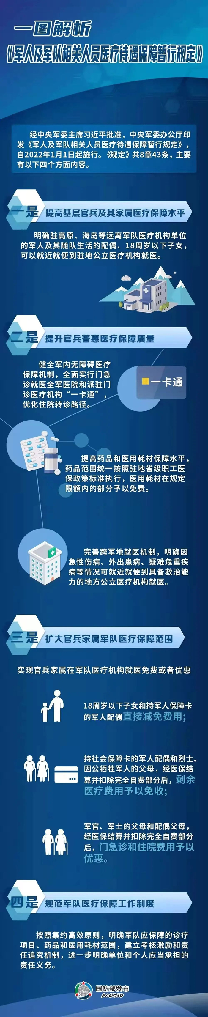 国防部介绍《军人及军队相关人员医疗待遇保障暂行规定》亮点,一图解析全知道