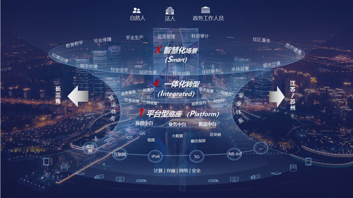 《规划》擘画了苏州工业园区“一个数字政府、一座数字新城、一种数字生活”的数字化发展新图景,提出“1+4+X”为核心的数字新城总体框架:以1个高度集成的数字底座,搭建起基础设施“一云承载”、数据资源“一池融通”、公共能力“一体赋能”、服务感知“一端智联”的城市智能中枢;围绕4项一体化转型,即政务服务“一网通办”、政府运行“一网协同”、城市治理“一网统管”和经济发展“一网提优”,构建X个无限发展的智慧场景。