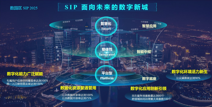 “十四五”期间,苏州工业园区将立足“中新合作”基础优势,秉承“开放创新”发展基因,持续深化数字化发展的先天优势,建设“整体数治、用心服务”的数字政府。坚持“一个整体政府”的转型方式,打造“数据驱动、场景牵引”双引擎:以数据为核心要素,实现“一次汇聚、多方共享、协同应用、安全开放”的一体化数据链,全面提升数据治理。以数字化场景牵引技术创新和市场应用,通过多元业务协同,提供功能丰富、服务高效的个性化业务应用,激发政府治理创新活力,构建智慧化(Smart)、整体性(Integrated)、平台型(Platform)“SIP数治”新范式。矢志成为国家级开发区中机关协同效能最优、政务服务满意度最高、数智治理能力最强的有为政府。