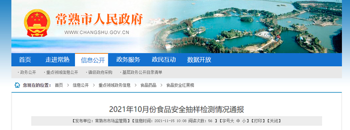 江苏省常熟市食安委通报2021年10月份食品安全抽样检测情况