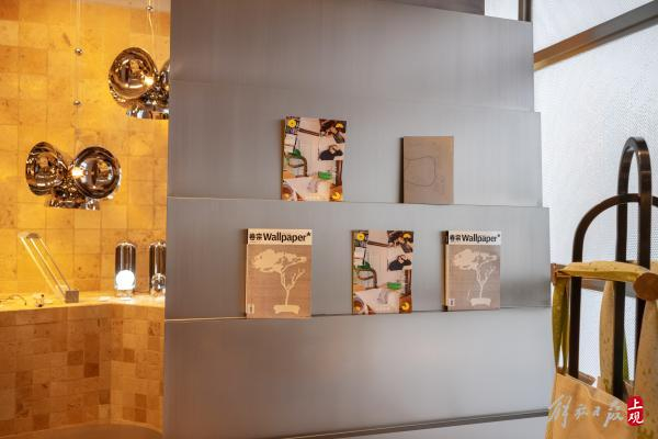 墙面上陈列着中文版的《wallpaper卷宗》杂志。