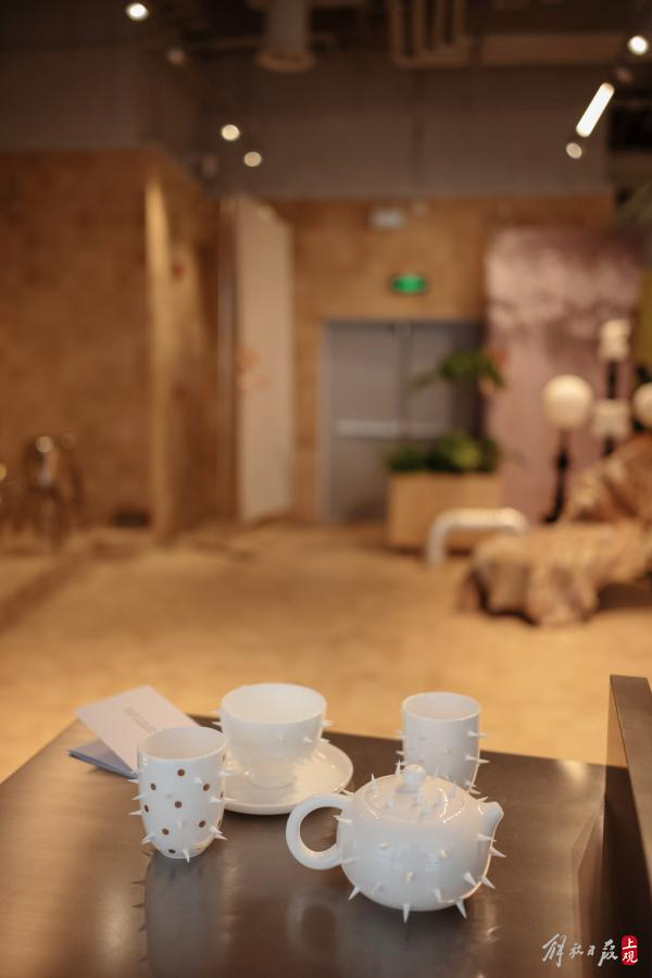 店里有不少造型精致的怪奇小物。比如浑身是刺的白色茶壶,其实这些尖刺都是软硅胶,手指戳上去qq弹弹。